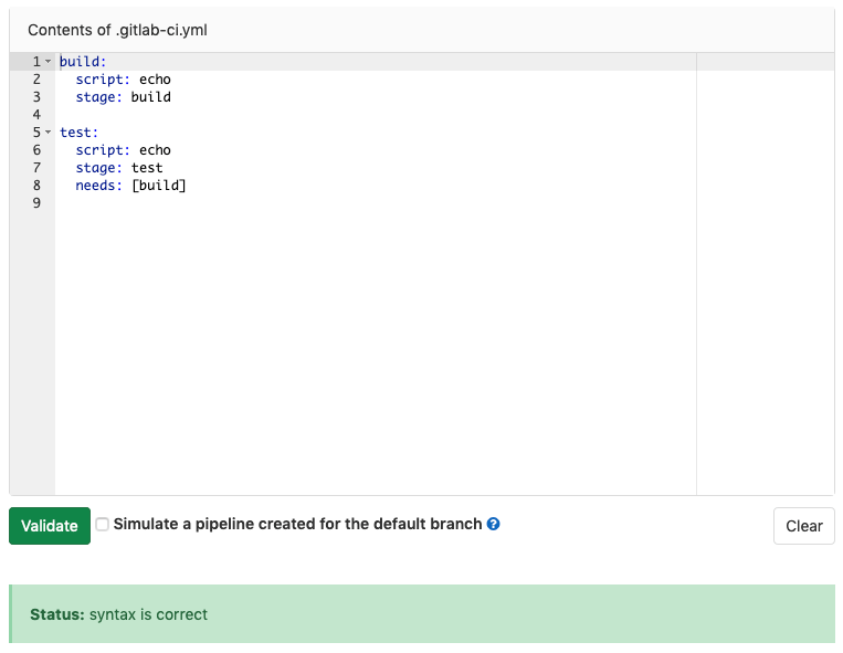 Validate .gitlab-ci.yml syntax with the CI Lint tool (FREE)